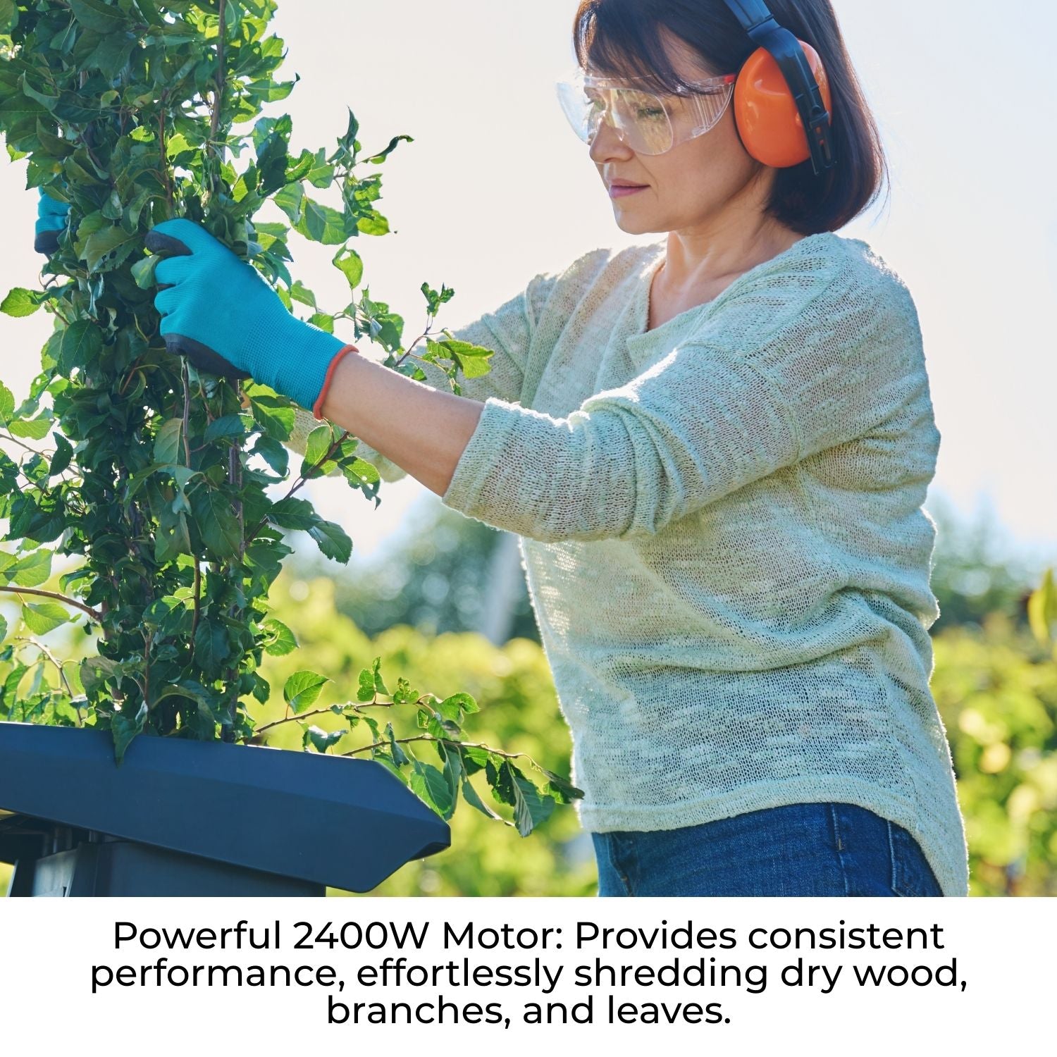 Powerful 2400W Motor: Turns branches, twigs, and leaves into bite-sized mulch faster than you can say “compost heap.” Soft-start tech means no jumpy starts — just smooth shredding power.