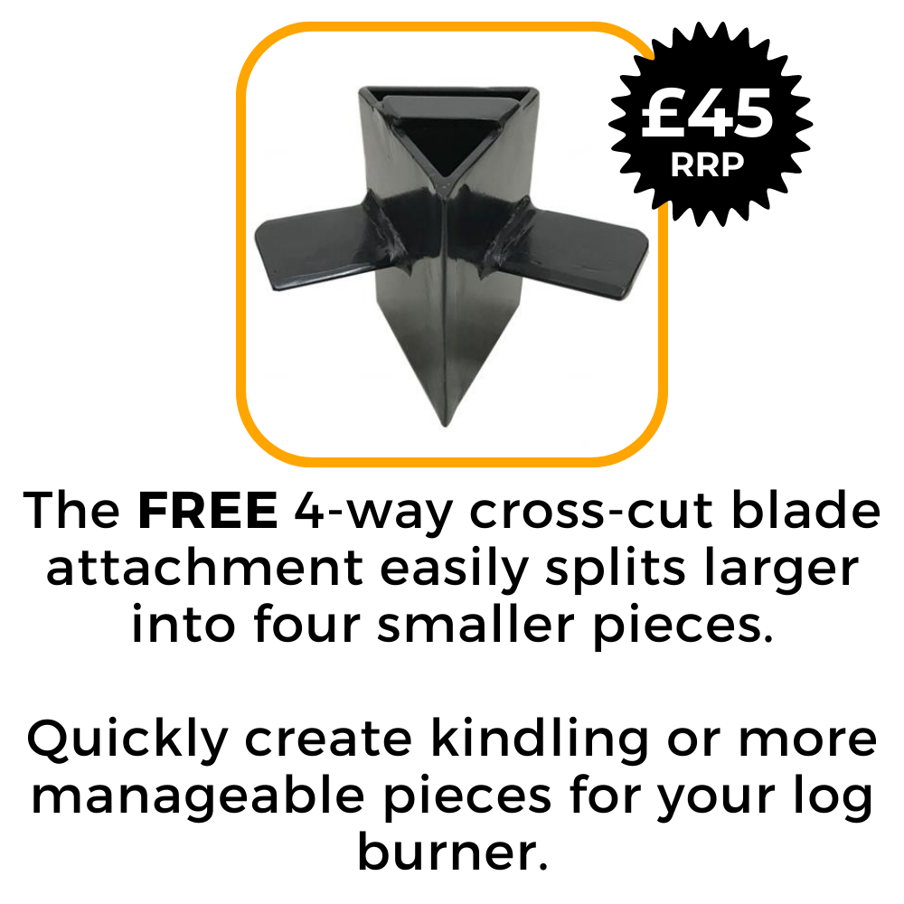 The four-way splitting wedge means you get quartered logs in one go—perfect for impressing your mates or just feeling very accomplished.